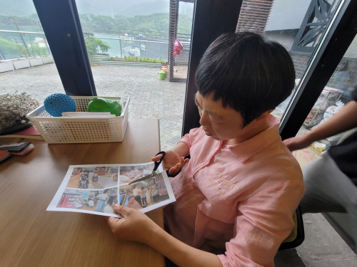 5층반은 그 동안 수업시간에 촬영한 사진을 출력하여 가위로 오려보는 시간을 갖았습니다.